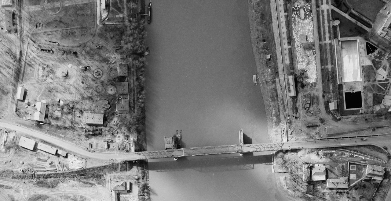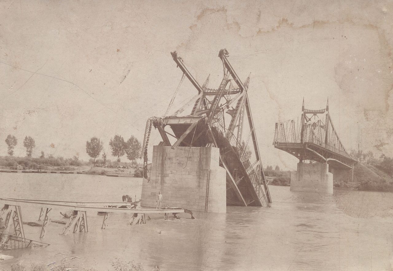 A front elvonulása után a megsérült hídtól nyugatra kompátkelőt, illetve pontonhidat létesítettek – miként ez a fenti fotó bal oldalán látható -, hiszen a közlekedést valahogy biztosítani kellett a két part között. Minden bizonnyal meglehetősen sok hadianyag, illetve a másik irányba jóvátétel és hadifogoly haladhatott át ezeken az ideiglenes szerkezeteken.
