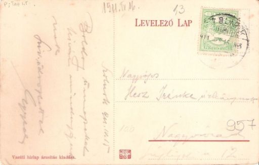 A „Vasúti hírlap árusítás” kiadásában megjelent képeslaphoz készült fotó a múltszázad első évtizedében készült. Ennél pontosabban nehéz meghatározni az időpontot, hiszen a képen látható házak mindegyike az előző századforduló előtt épült, ráadásul a villamosítás is addig történt meg. A záró időpontot akár a második világháborúig is elhúzhatnánk, ha ezt a példányt nem adták volna Szolnokon postára 1911. április 15-én. Egyébként sok szöveg nincs rajta, csupán „Boldog ünnepeket kíván mindannyiuknak” az olvashatatlan aláírás tulajdonosa. Így kimondhatjuk, hogy Szolnok főterének képével a Nagyváradon élő nagyságos Hesz Irénke úrleánynak – és valószínűleg családjának – küldött húsvéti jókívánságokat az ismeretlen.