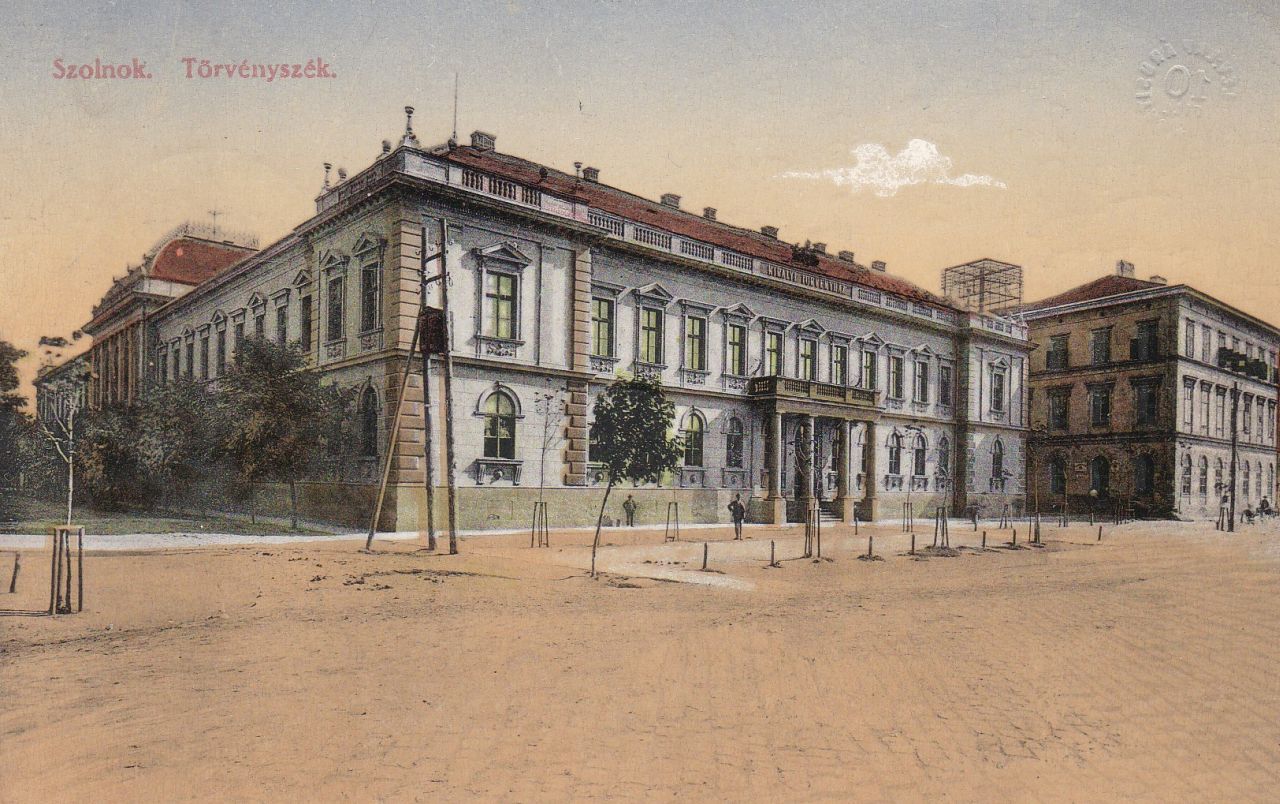A budapesti Glass és Tuscher képeslapgyár által készített szolnoki képeslevelezőlap fotós oldalára az akkoriban talán még csak húsz éves Törvényszék épülete került, ami anno a Gorove utca szám szerinti első épülete volt. Az ismeretlen fotós a megyeháza elől, a mai Dózsa György, akkoriban Werbőczy utca torkolatától örökítette meg a megyeszékhely egyik fontos középületét, és a fotózáskor éppen a Magyar Királyi Posta egyetlen szolnoki hivatalának helyet adó mai Vargát, a város első kétemeletes bérházát. Kedves békebeli felvétel, aminek hátuljára egy ismeretlen, láthatóan kapkodva írta üzenetét, majd küldte Szolnokról Bécsbe 1914. augusztus 14-én. Tizenhét nappal a hivatalos hadüzenet után, amikor az első elesett katonákat már eltemették, de a többség még virágszőnyegen vonult a halálba, és elhitte, hogy mire lehullanak a levelek, győztesen térhet haza.