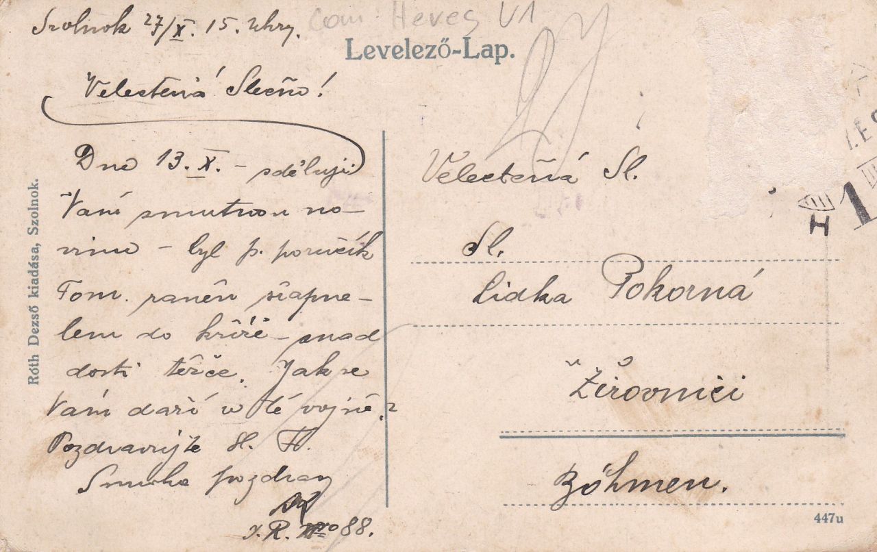Azt hiszem, ha nincs a vasút és nincs az első világháború, akkor ma sokkal kevesebb régi képeslapot ismernék Szolnokról. Ugyanis elvitathatatlan tény, hogy abban a négy évben az egyik legjobb üzlet lehetett szolnoki képeslapokat gyártani és a vasútállomáson árusítani. Azzal együtt, hogy ezeknek a képeslapoknak a vásárlóit a legkevésbé sem érdekelte az anziksz képes oldala. A többségnek az volt a fontos, hogy a frontra indulva vagy a frontról hazafelé tartva életjelet adhasson magáról az otthoniaknak. Nem véletlen, hogy a Szolnokon feladott lapok között nemcsak a Felvidékre, Erdélybe és a Vajdaságba küldötteket találunk, de rengetegnek a címzettje volt a mai Ausztria vagy Csehország területén élő hozzátartozó.