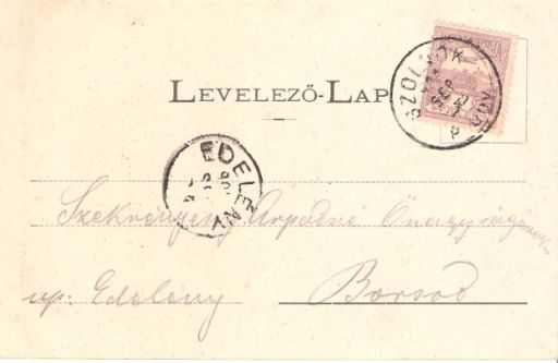 Szekrényessy Árpádné született Lossonczy Albina (1854-1906) Borsod falu földbirtokosa volt. Borsod (ahová a képeslapot címezték – a szerk.) ma Edelény város része. Az életéről, életükről 2006-ban írtam könyvet Egy borsodi udvarház története címen. Szekrényessy Árpád a helyi tájház és kicsiny múzeumnak is névadója. (…)