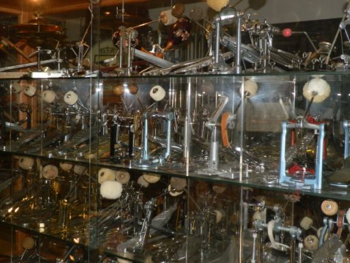 Vessenek meg érte a hozzáértők és a dobosok, de mindeddig a lábgép számomra egy szimpla pedál volt, ami a lábdob megszólaltatásához kell. Soha bele nem gondoltam, hogy a mai modern dobfelszerelések miként születtek, és a lábdob lényegében a katonazenekarok földre rakott nagydobja, amit a lábgép segítségével, a kezek szabadon hagyása mellett lehet megszólaltatni. Ahogy a pergő és a lábcin is egy-egy külön hangszerből lett a mai dobfelszerelés része, mondjuk, 125 évvel ezelőtt. Szóval el nem tudtam képzelni, hogy ez az egyszerűnek tűnő hangszertartozék – mármint a lábgép -, hányféle lehet, micsoda kidolgozottságban készülhet, és nemcsak egy mechanikai, gépészeti csoda, de némelyik iparművészeti remek. Most, hogy két órát eltöltötten a ceglédi Dobmúzeumban, mindezt már tudom. Annak ellenére, hogy a 360 darabos lábgép kollekcióból csak alig néhányat volt alkalmam szemügyre venni.