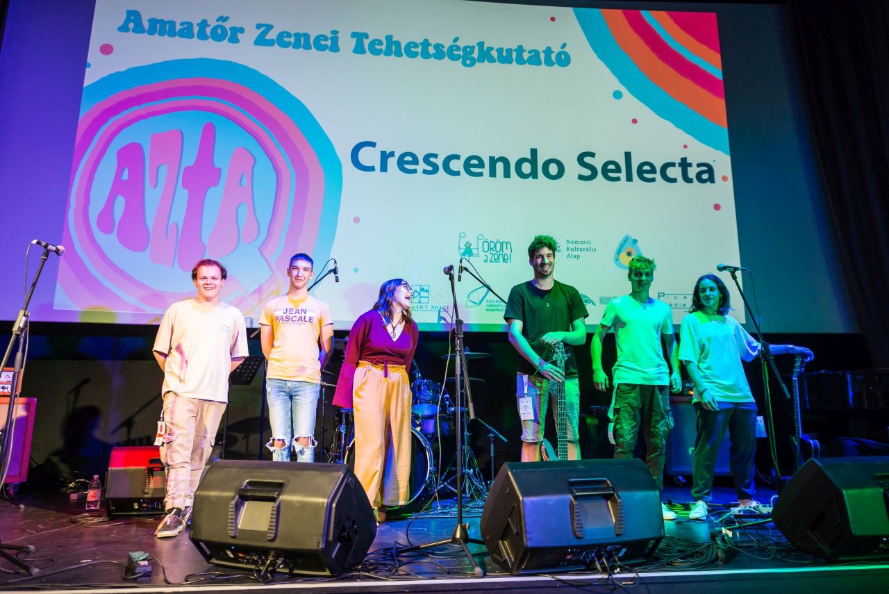 A Meg egy cukorka, a Carson Coma és a tavalyi nyertes Cloud Factory után a Székesfehérvárról indult, de ma már a főváros felé orientálódó hattagú Crescendo Selecta is elmondhatja magáról, hogy megnyerte az AztaQ, amatőr zenei tehetségkutatót. A 2023-as versenynek a szolnoki Tisza mozi adott helyet, ahol a nevező zenekarok közül – a szervezők előzetes válogatása után – öt együttes és egy szólóprodukció léphetett színpadra. Az Andrásik Remo, Cserfalvi Zoltán, Horváth Gergely, Farkas Róbert, Maróthy Zoltán és Pap Béla alkotta zsűri (a mellékelt képen – a szerk.) a másfél éve alakult, jazzes motívumokkal fűszerezett neo-soul, pop, funky és R&B stílusú dalokat játszó Crescendo Selectát juttatta Jász-Nagykun-Szolnok vármegyéből az Öröm a Zene döntőjébe.