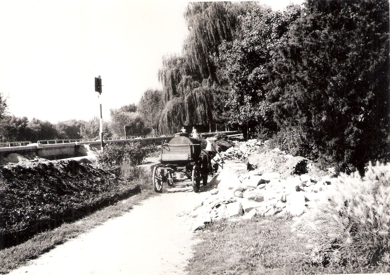 Őszintén megmondom, nem pontosan tudom, miért tartotta valaki fontosnak, ennek a lajtos kocsinak a megörökítését, ám tény, hogy ennek köszönhetően képünk lehet a korabeli parképítési munkákról. Ami feltételezésem szerint az új Tisza-híd építésével, vagyis az építés utáni parkrendezéssel függhetett össze.
