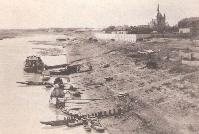 Bő száz évvel ezelőtt ez a kép tárult Szigeti Henrik – „Szolnok képes krónikása” – elé a Tisza bal partjáról, nagyjából a szandai hídfőtől. Ne felejtsük el, hogy amikor ez a fotó készült, még fahídon kellett átkelni a Tiszán, és a mai Verseghy park helyén – sőt az egész környékén – különböző állatpiacok működtek.