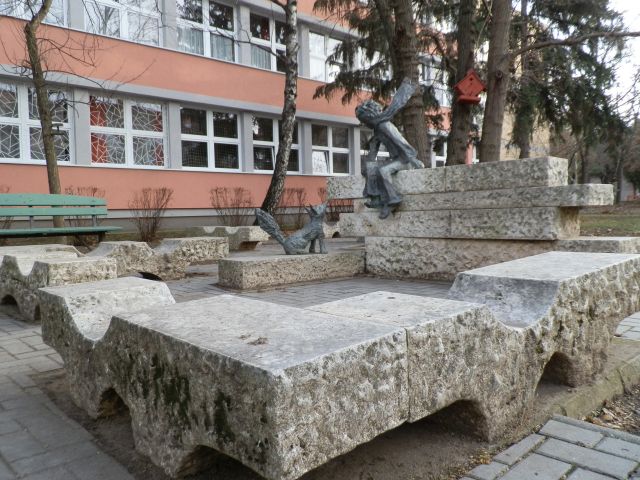Hogy 1979 gyermeknapján – május utolsó vasárnapja – miért éppen az akkori Ságvári Úti Általános Iskola kertjében leplezték le Szöllőssy (máshol Szöllősi) Enikő, később Munkácsy-díjjal kitüntetett szobrászművész alkotását, az persze kérdés. A Sipos téri iskola utódjának tekinthető intézmény ugyanis már 1967-ben megnyílt, sőt második szárnya is elkészült a Gyermekév előtt. Talán az lehet a magyarázat, hogy akkoriban ez volt az egyetlen olyan szolnoki új – a szocializmus idején épített – iskola, aminek még nem állt a kertjében szobor.