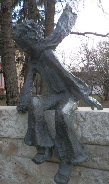 A kétalakos kompozíciót ihlető A kis herceg című művet író francia Antonie de Saint-Exupéry (1900-1944) egyébként éppen 75 évvel ezelőtt, 1944. július 31-én zuhant le a Földközi-tenger fölött, Marseille közelében. A valószínűleg németek által lelőtt repülőgépének roncsait csak 2000-ben találták meg, és 2003-ban emelték ki. Addigra azonban már nem csupán egy hadi eszköz volt, hanem a világ egyik legtöbb nyelvre lefordított és legnagyobb példányszámban eladott „mese” szerzőjének emléke. A wikipedia szerint Saint-Exupéry először 1943-ban megjelent művét az elmúlt háromnegyed évszázadban 345 nyelven és dialektusban jelentették meg – a magyar és francia verzió mellett Rostás Farkas György lovári nyelvű fordítását is őrzöm -, 80 millió példányban kelt el, és a „világ 50 legolvasottabb könyve” között tartják számon. Magyarul eddig hét változatban jelent meg, de valószínű, hogy a legtöbben a Móra Kiadó gondozásában 1970-ban kiadott Rónay György fordítást ismerjük.