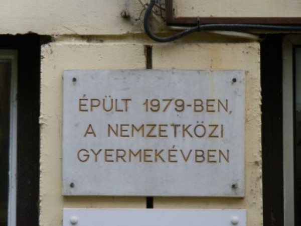 Nem ilyen léptékű a Jósika utcai bölcsőde, amit természetesen akkor is meg kellett volna építeni, ha éppen nincs a Nemzetközi Gyermekév. A környék fejlődése, a lakásállomány bővülése ugyanis újabb óvodai és bölcsődei férőhelyeket követelt. Persze biztos, hogy a tervezőknek és a beruházóknak is eszébe jutott – vagy felhívták rá a figyelmüket -, hogy milyen jó lenne az átadást és a Gyermekévet összekapcsolni. Gondolom, így kerülhetett a máig a helyén lévő, egyszerű emléktábla a bejárat mellé.