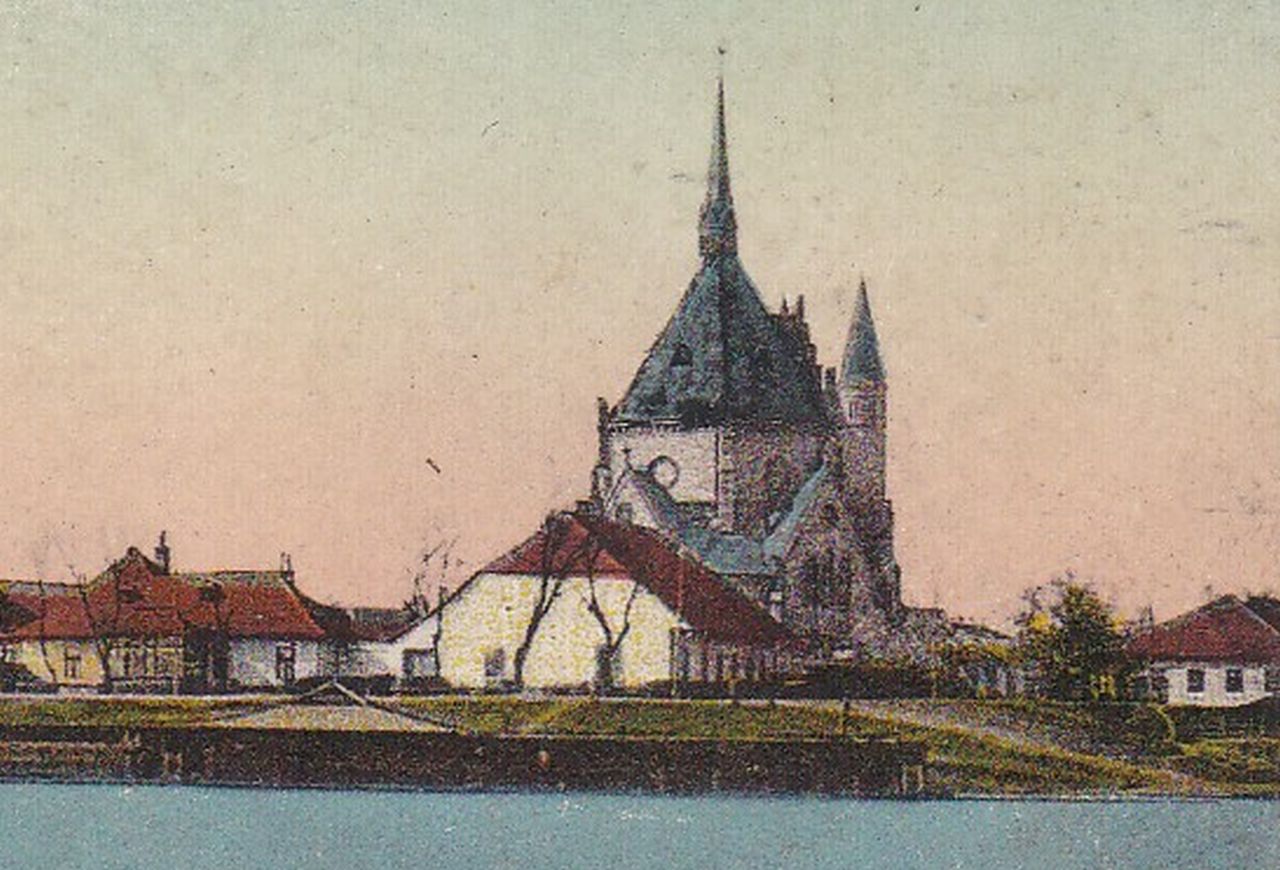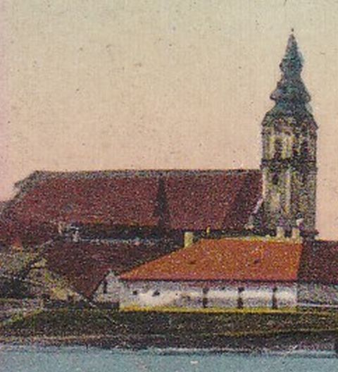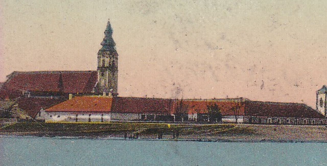 Az ehhez az 1915-ben kiadott, de csak 1917-ben postázott képeslaphoz használt eredeti felvételt valamikor 1905 és 1912 között készítette valaki a Tisza bal partjáról, a Móricz-ligetből. Meglehetősen magas vízállásnál, valamikor kora tavasszal, így jól látszik nemcsak a rakpart, de a három templom körül álló többi ház is.