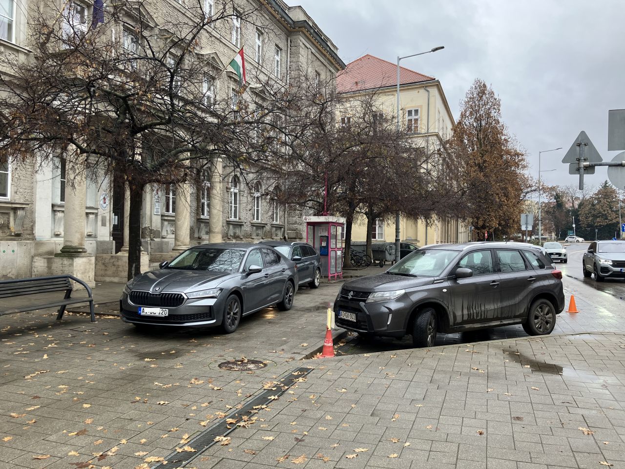 Miként súlyos kérdéseket vet fel az is, hogy ha már a bíróság előtti parkolóhelyeket a törvényszék és a belügy járműveinek tartják fenn, akkor miért parkolnak rendszeresen állami Skodák az épület előtti járdán. Szolnok belvárosának a közepén, ahol rendszeresen felbukkannak közterületfelügyelők és rendőrök is. Mivel a környéken – ma még – nincs olyan tábla, ami a járdán parkolást, különösen civil autókkal lehetővé tenné, minimális KRESZ ismeret birtokában, de talán a józan paraszti ész mellett is belátható, hogy ezekkel az autókkal rendszeresen és folytatólagosan, hatósági emberek szembehunyása mellett követnek el szabálysértéseket. Olykor naponta, olykor hetente többször. Egyszerűen megkerülhetetlen a kérdés, hogy e fölött miért huny szemet minden illetékes? A miértben pedig ott az ellentételezés miatti aggodalom is.