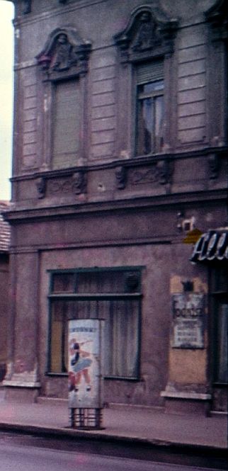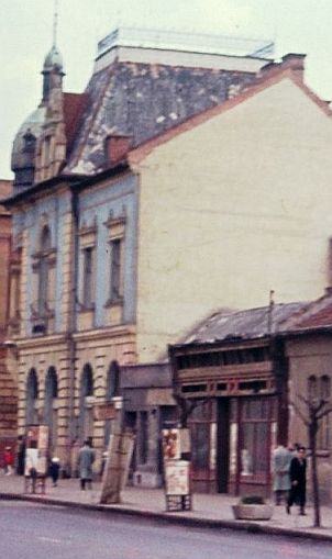 Rita nevű kedves olvasómtól kapott kép értéke számomra elsősorban az, hogy megmutatja, milyen is volt a Kossuth Lajos és a Kellner Gyula – akkor F. Bede László – utcák találkozása, mielőtt a megyei tervező vállalat úgy döntött, ide építi fel a korra jellemző székházát. Mint láthatjuk három, a korabeli városképbe se nagyon illő ház állt azon a telken – vagy telkeken -, amelyen ma az egykori tervezők épülete áll. A sarkon egy földszintes lakóház, majd két, nem túl impozáns boltépület következik, mielőtt tekintetünk a kaszinóig ér. Ha valaki esetleg tudja, hogy abban a két pici, utcai portálos épületben milyen üzletek működtek nagyjából a hatvanas évek első felében, kérem, árulja el.