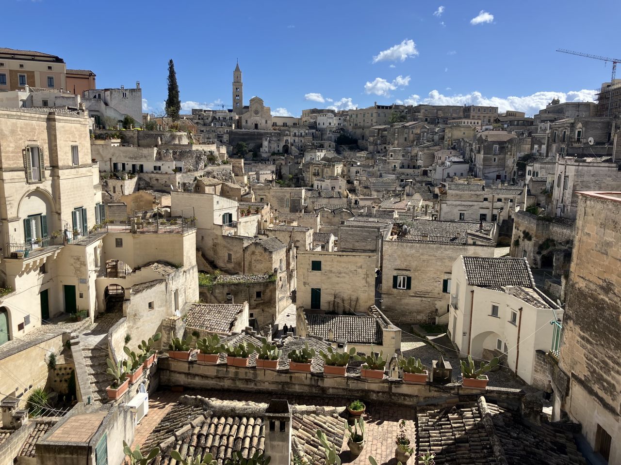 Alberobellotól nem túl messze másik példát is találni arra, hogy érdemes régi otthonokat megőrizni. Még ha elsőre azok is elég korszerűtlennek és ódivatúnak tűnhettek, ráadásul központi fekvésük miatt szintén kiváló építési terület lehetett volna a helyükön. Így viszont Matera olyan nevezetességei lettek a sziklalakások, amelyek között március közepén – tehát messze nem turista főidényben – annyi helyi és külföldi kiránduló bóklászott, hogy Szentendrén vagy Egerben a tizedéért is hálásak lennének bármikor. Pedig a két völgyben és a domboldalakon elhelyezkedő házak valamikor tényleg a szegény emberek, nem túl különleges otthonai voltak, amelyek egy jelentős részét mégiscsak sikerült évtizedekkel ezelőtt megmenteni. Lehet, hogy valahol Materában van szobra, sőt a helytörténeti munkák emlegetik is azt, aki keresztül tudta vinni ezeknek a házaknak a megőrzését, én nem találkoztam vele. De hát a világon mindenütt szívesebben állítanak szobrot romboló és pusztító hadvezéreknek és állampolgárait gyilkoló államférfiaknak, mint a múltat a jövőnek megmentő egyszerű embereknek.