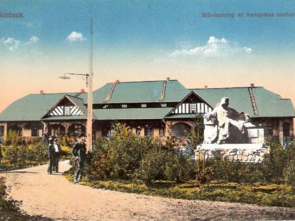 Ugyancsak több képeslapon feltűnik a Szolnoki Művésztelep kertjében 1919-ig álló Anonymus-szobor nagyminta. Ligeti Miklós Névtelen jegyzője a budapesti Vajdahunyad várában áll, de annak egy előtanulmánya Szolnokra került, ahol aztán az 1919-es harcokban – amikor a Vártemplom is találatot kapott – megsemmisült. E cikk címlapfotója is ezt a szobrot, illetve a Művésztelep házait mutatja. Annak a beállításnak a sikerét jól mutatja, hogy abból a fotóból nemcsak fekete-fehér, de színezett képeslap is készült.