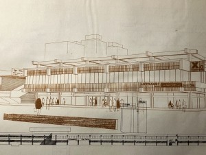 Szolnok új városközpontjának terveit – ahogy arról a blogSzolnok Évfordulós álom című cikkében már írtam – a város „felszabadulásának” negyedszázados évfordulójára publikálta a Lakó és Kommunális Épületeket Tervező Vállalat (Lakóterv) kollektívája. Az elképzelés a mai Baross, Kápolna, Ady Endre utcák és a Boldog Sándor István körút által határolt területtel foglalkozott, a pártházat és az SZTK-t adottságként kezelve, miközben a Pelikán szálló és a vízügyi székház építése már zajlott e terv bemutatásakor. A nagyívű elképzelésekből a vízügyi és az olajos székház, a Pelikán valamint a Centrum áruház, illetve az ahhoz két oldalról kapcsolódó üzletsor és az ezek által közrefogott belső udvar valósult meg. Minden egyéb, azaz három további irodaház – ebből kettő magasház -, az önálló könyvtár és művelődési ház a Kápolna út mentén, továbbá az új vásárcsarnok és egy ABC tetejére kerülő mozi ugyanúgy álom maradt, mint az az emeletes passzázs, amely lényegében az SZTK-tól a Centrumig vezetett volna a tömb két oldalán.