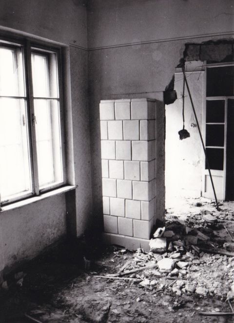 A nekem átadott fotók alapján talán jól sejtem, hogy Nagy Zsolt többször is visszamehetett egykori otthonába a bontás idején. És mint a megyei napilap fotórovat vezetőjének nem okozhatott gondot, hogy akár az építési területre is bejusson. Így készülhetett ez a cserépkályhás kép, ami utal arra, miként is fűtötték a Nerfeld-palota egy részét. Megkockáztatom, hogy ez a kép esetleg a fotós egykori otthonában készült.
