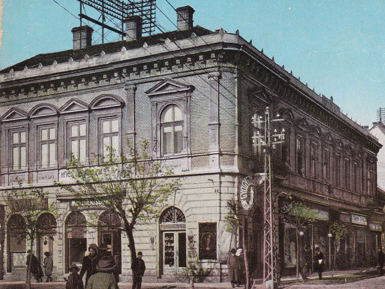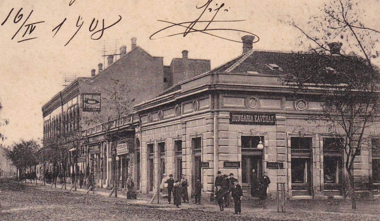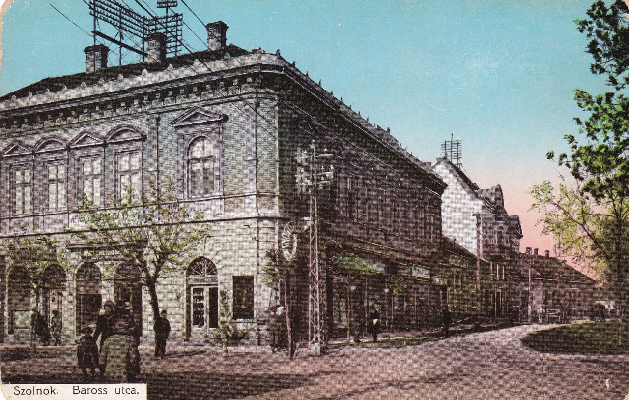 Tehát ez a kép legkorábban 1896-ban készülhetett volna, ha nem lenne az épület sarkánál egy többágú, vas villanypózna, ami miatt azt kell mondani, inkább a huszadik század első éveiből való a felvétel. Azaz egyben azt is kell feltételeznem, hogy a Baross utca 1974-re elbontott páratlan oldala jó pár évvel a Kindlovics-bazár átadása és a mellette lévő házak felhúzása után épült be. Magyarul a Hungária kávéház, ami szerintem a második világháborúban semmisült meg, negyven évig sem állt Szolnok közepén.
