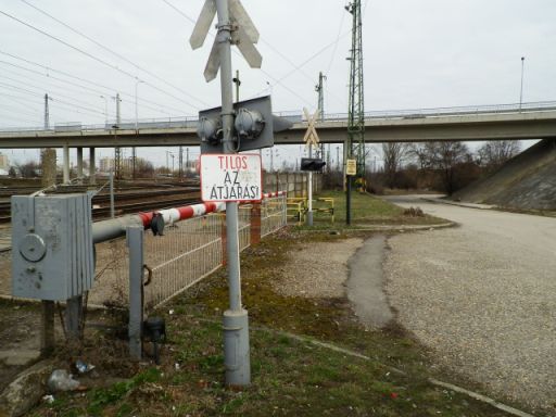 Ennek a bosszantó átjárónak a pontos helyét ma már nehéz meghatározni. Elsőre azt mondanám, hogy ott volt, ahol a felüljárótól az állomás felé ma is találunk egy szoknyás sorompót. Régi térképeket nézegetve azonban úgy tűnik, inkább az elkészült felüljáró másik oldalán lehetett az átkelő, valahol a Szántó körút és a Tél utca között. Amihez persze a legnagyobb forgalmat a Thököly utca vihette, aminek eredeti nyomvonala ma is a felüljáró állomás felőli oldalán indulva kanyarodik be a műtárgy alá.