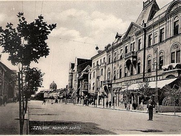 Amikor ez a kép készült, a Nemzeti Szálló már több mint négy évtizede állt a szolnoki korzón, túl volt néhány tulajdonosváltáson, ám fénye még nem kopott meg. Oromzatán ott az építtető neve, tetején pedig egy mára eltűnt – általam eddig soha máshol nem látott – „Nemzeti” felirat. Nem lepődnék meg, ha világított is volna, hogy a híd vagy a vasútállomás felől érkező vendégek akár éjszaka is könnyen odataláljanak a város – ekkor már csak egyik – legjobb szállodájához.
