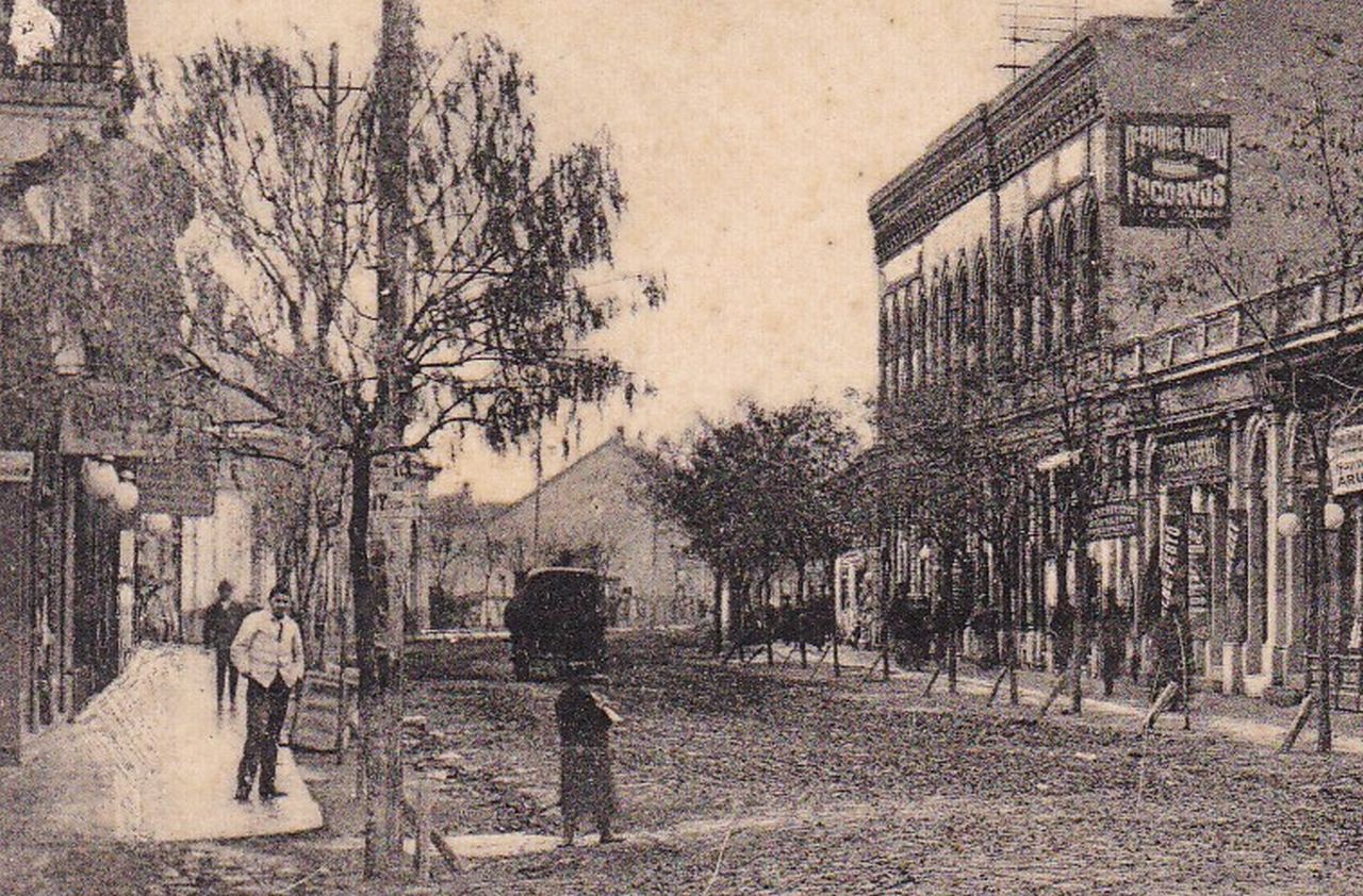 Legalább ennyire érdekes ezen a képen az 1-es posta hiánya is, hiszen ha az egykori fotós helyére állnánk – nagyjából a mai zebra Árkád felőli végéhez -, akkor a látóteret nagyjából a Bauhaus stílusú, zöld homlokzat zárná le. De hát azt csak negyedszázaddal e fotó készítése után adták át az ezen a képen még üresnek tűnő, Mészáros Lőrinc utcai saroktelken. Ami mögött – szerintem – a Baross utca 16. szám alatt ma is álló, jelenleg ingatlanirodának helyet adó, tornyos ház tűzfala látható. Sajnos a Baross utca páros oldalából több alig vehető ki ezen a képen, holott azokat a házakat láthatnánk, amelyek valahogy túlélték e környéken az előző évszázadot. Ami azért nagyon jól indult Szolnokon. Tessék megnézni! Macskaköves utcák, két oldalukon járda, villanyvezeték és megtámasztott, karózott facsemeték. Azaz egy gondozott, a közjólétre is adó településsel találkozhatott az az idegen is, aki a birodalom osztrák tartományaiból érkezett hozzánk. Hogy aztán – a képzeletemben – a Hungáriából egy Hungáriát mutató lappal bizonyítsa: egy európai városban tölti idejét.