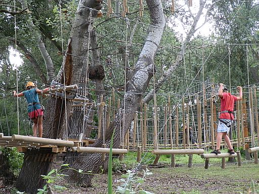 Mivel a Tisza-tó tényleg csak egy órányira van Szolnoktól, a második napi ebéd után sem érdemes azonnal haza indulni. Inkább át kell kelni a folyó másik oldalára, mert a Tiszafürednél található Robin kalandsziget értelmesen fárasztó élményt nyújt a kiskorúaknak. A strand mellől indul a kishajó a szigetre, ahová szülőként sétálójegyet is válthatunk, a srácok minden attrakcióra szóló belépője mellé. Így az idegösszeomlás és a büszkeség között ingadozva figyelhetjük, amint a 10 éves lányunk több méter magas falra mászik, 12 éves fiunk 400 métert suhan az ártéri erdő felett egy kötélen, és legalább egy órán keresztül akasztgatják a fák közé épített pályán a karabinereket.