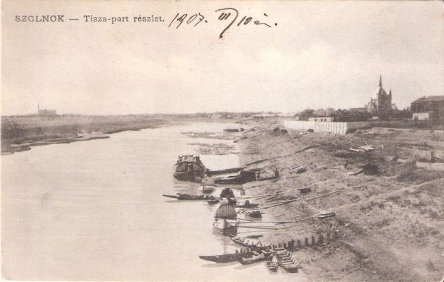 A szolnoki Róth Dezső kiadásában megjelent fekete-fehér képeslaphoz használt felvételt még a Tiszán "átívelő" utolsó fahídról készítették valamikor az 1900-as évek elején. Legnagyobb értéke, hogy megmutatja, milyen volt a Tisza-part mielőtt elérte volna a "városiasodás".