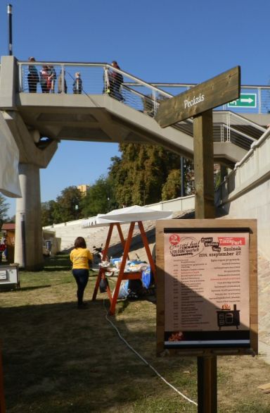 Őszintén megmondom, nem igazán tudtam szétválasztani, hogy a kényelmesen elterpeszkedő forgatag melyik része volt a Tiszai hal napja és melyik a Szolnoki Sparhelt Fesztivál. De délelőtt, a kellemes füstszagban, az itt-ott már felszálló fűszerillatban sétálgatva, ez nem is volt lényeges. A sparheltek eszméletlenül jól néztek ki, nem is értem, honnan szedtek össze ennyi sütő-főző alkalmatosságot. A cégek és baráti társaságok pedig láthatóan jól szórakoztak a halételek készítés apropóján. Mi, kívülállók meg remek programot kaptunk a kellemes őszi délelőttön. Mert nem volt tömeg, nem tukmálták a gagyit, nem bömbölt idegesítő tuc-tuc zene. Szóval az egész jóval közelebb állt az általam kedvelt Tiszavirág Fesztivál, mint az inkább kihagyott majálisok hangulatához.