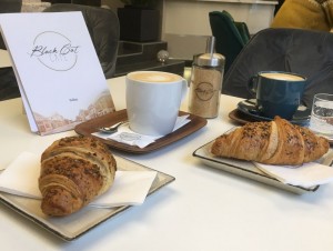 Ugyanakkor el kell ismerni, hogy a kínálatuk csillagos ötös. Az első alkalommal kipróbált pisztáciás croissant-juk fenséges, sűrű ismétlésért kiált. A poharas tiramisujuk toplistás a műfajban. A számomra megjegyezhetetlen nevű, fantasztikus íz- és színösszeállítású szeletsüteményeik elkápráztatnak, főleg, hogy nem tömény édességek. És megnyugtató, hogy a habos islerjük mind tésztájában, mind habjában, mind az öntet tekintetében messze hozza az elvárható szolnoki minimumot. Mivel nem vagyok nagy kávés, sőt inkább mindenütt ugyanazt iszom, csak arra hagyatkozhatok, hogy a Black Cat-ben kapott íz a számhoz illik. Akik pedig velem éppen teáztak, szintén nem panaszkodtak. Egyetlen dologgal nem tudok megbékélni: a szénsavas vizükkel. Amit trendi, saját logós palackban szolgálnak fel, csak éppen olyan kevés benne a buborék, mintha Lali beüzemelte volna a bubi kiszedő gépét az Üvegtigrisben. Könyörgöm, miért?