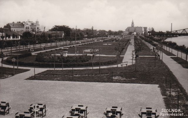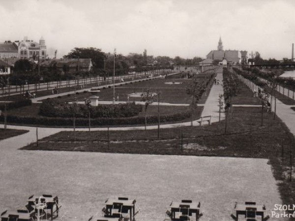 Ez a kilencvenegy éves szolnoki képeslap megőrizte, hogy milyen is volt a mai Verseghy-park nem sokkal az elkészülte után. Ráadásul sok apró érdekességet is fel lehet fedezni a Tisza szálló fagyizójának a tetejéről, az akkori Park utca és Ferenc József rakpart környékéről készült felvételen.