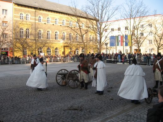 – Ez lesz a tizenötödik. Az első kettőt még a Széchenyi lakóteleppel szemben, a vasúti híd melletti Zagyva ártérben rendeztük, ahol belefulladtunk a sárba. Utána áttettük a Szandai-rétre, körülbelül a mostani áruházak helyén zajlott a csata. Amikor onnan is kiszorultunk, akkor a Pálfy János Szakközépiskola előtt, a Tisza árterében elevenítettük fel az 1849-es eseményeket. Az azért volt nagyon jó helyszín, mert a közönség a sétányról, fölülről láthatta a csatát. Tulajdonképpen a gyaloghíd építése miatt tettük át a szolnoki csatát a Kossuth térre, aminek persze nagy előnye, hogy ott nem kell a sárral küzdenünk, és a nézők számára is jobban megközelíthető a helyszín.