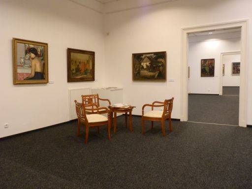 Természetesen ott sorakoznak a legnagyobbak alkotásai: Aba-Novák Vilmos, Borbereki Kovács Zoltán, Chiovini Ferenc, Deák-Ébner Lajos, Fényes Adolf, Gecse Árpád, Iványi Grünwald Béla és még sokak munkái. Ahogy az utolsó termekben a ma vagy a közelmúltban a telepen alkotók is felsorakoznak Fazekas Magdolnától, Pogány Gábor Benőn és Soós Györgyön át Verebes Györgyig.