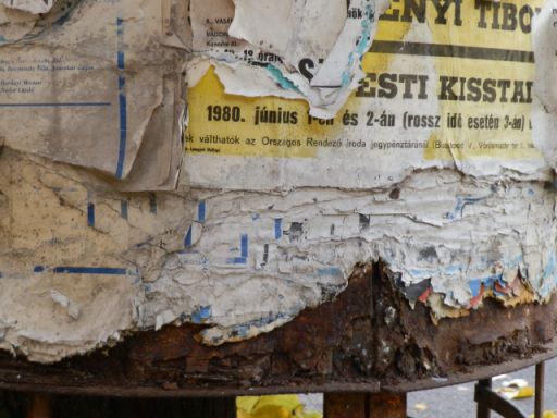 Visszatérve a Mátyás király úti hirdetőhengerhez: nem tudok betelni vele. Ugyanis az egymásra ragasztott plakátok Szolnok múltjából – elsősorban kulturális sokszínűségéből és politikai változásaiból – őriznek töredékeket. Itt-ott felhajthatók, kicsit letéphetők a régi, több éve kint lévő plakátok, így újabb és újabb pillanatokat csalogathatók elő a múltból. Ezen az oszlopon például van még egy olyan plakát, ami szerint az ünnepi beszédet Várhegyi Attila mondja Szolnok polgármestereként. Ilyesmire utoljára 1998 tavaszán kerülhetett sor. (Szerintem persze az sincs rendben, hogy egy városban, egy néhai városvezetőre ez az egyetlen felirat emlékeztet.)