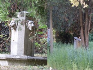 A két egymásmellé rakott kép nagyjából egy év különbséggel készült a Magyar Rádió egykori szolnoki stúdiójának a Kolozsvári úti udvaráról. A bal oldali képen még viszonylag jó állapotban van az oroszlános kút, a jobb oldalin már csak a csonkja látható. Úgyhogy elmondhatjuk, ismét szegényebbek lettünk valamivel. Pontosabban egy olyan díszkúttal, ami 1952-ben még a Kossuth téri 1-es számú irodaház udvarán állt. A hetvenedik születésnapját nem élhette meg.