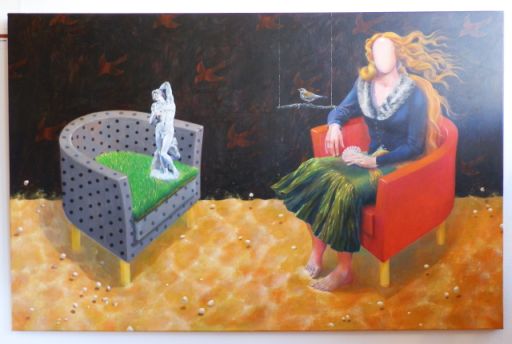 Az egyik falon látható, így akár egyszerre is befogható tizenhárom Fazakas-Koszta képet az élénk színhasználat mellett számomra két dolog köti össze. Az arc nélküli figurák megjelenése, illetve az ismert, világhírű festmények részleteinek a megidézése. Mindezek miatt nekem ez egy játékos és szórakoztató kiállítás olyan képekből, amelyek közül bármelyiket szívesen akasztanám a szobám falára.