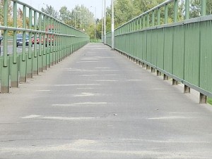 Nincs egy éve, hogy hosszú hetekig félpályás forgalomkorlátozás mellett javították a "Százlábú-hidat" az ártérben. Azóta a garanciális javításokra is sor került, amit a gyalogos és kerékpáros sávokon megjelenő csíkok jeleznek. Szerintem minden esélyünk meg van arra, hogy jövő tavasszal ismét lehessen itt veseköveket kezeltetni. Mert az a hülye anyag nem köt rendesen. Vagy valamit rosszul oktattak. Vagy miért nem bírt ez ki egy évet?