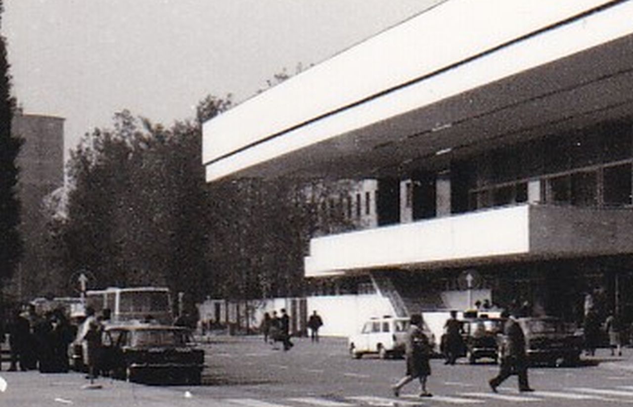 Ezen a fotón persze mást is érdemes észrevenni így közel öt évtized távlatából. Például a jobb szélen látható kötelező haladási irány KRESZ-táblát, amilyet ma már nem használunk. Esetleg az állomásépület előtti járda szélén lévő kukákat, amelyek mára szintén eltűntek. Vagy egy másik „hiányt”: az épület előtti parkoló eredetileg nem volt „zsákutca”, azaz a felvételi épület felől is nyitott volt. Igaz, akkoriban még jóval kevesebb volt az autó a városban (is), miként taxiból kevesebb állt az utazók rendelkezésére. Azokat pedig vagy a Volán vagy a Szövtaxi működtette, és a hetvenes évek közepén már szinte csak Zsigulik voltak.