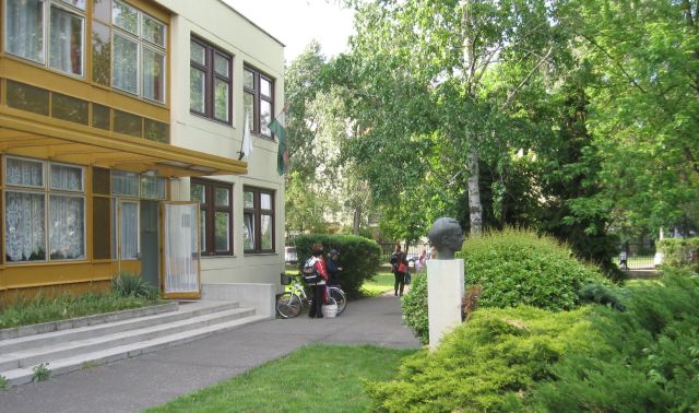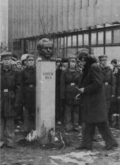 Ezek után talán nem meglepő – maximum, rettentő furcsa -, hogy a zeneiskola névadójának portrészobrát csak egy bő évvel az intézmény az új épületének megnyitása után, 1984-ben helyezték át mai helyére. Mindez pedig azt is jelenti, hogy ez a ma már úttörőházként nem működő épületkomplexum talán az egyetlen olyan közintézmény Magyarországon, amelynek területén ugyanannak a szobrászművésznek három – nem az épület díszítőelemeként értelmezhető – alkotását is megtalálható.