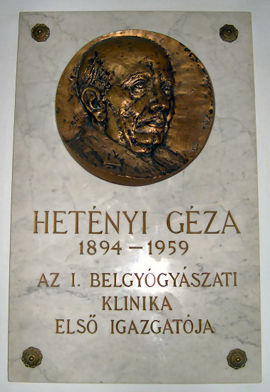Hetényi Géza a Monarchia idején, 1894-ben született Budapesten. Az első világháború kitörése előtt kezdte meg orvosi tanulmányait, ugyancsak a fővárosban, amit a világégés és a forradalmakkal tarkított rendszerkeresés miatt, csak 1919-ben fejezhetett be. Korányi Sándor gyakornokaként kezdte a pályáját – ez legalább olyan fontos, mint a képzőművészeknél, hogy ki volt a mesterük -, majd az anyagcsere-betegségekkel kezdett foglalkozni, így 1938-ban kinevezték a budapesti Stefániai úti belgyógyászati intézet vezetőjévé, amit 1946-ban cserélt rövid időre a Mártonhegyi hasonló profilú intézményre. Még a koalíciós időkben, 1947-ben került Szegedre az I. Belgyógyászati Klinika élére. Elhivatottságát jól jelzi, hogy 55 évesen a Magyar Tudományos Akadémia tagja lett, alig egy évvel azután, hogy megházasodott. Még tíz évet adott neki a sors, az elérhető források szerint 1959-ben, munka közben érte a halál.