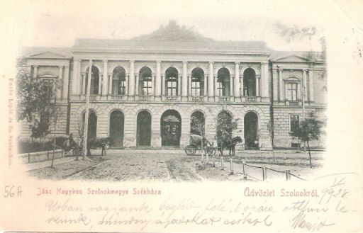 Bár elsőre akár úgy is tűnhet, mintha e fotó készítésekor még nem állt volna a Megyeházával szemben a bíróság épülete, biztosak lehetünk abban, hogy a Fuchs Lipót és fiai gondozásában Szolnokon megjelent anziksz 1896 és 1899 között készült, azaz csak nem látszik a törvényház.