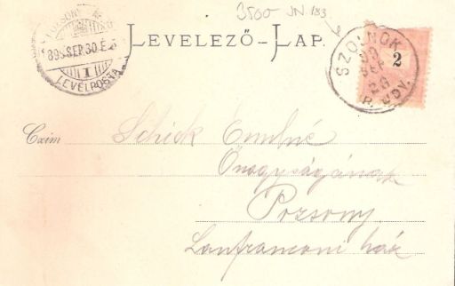 Ezt a bérkocsis képeslapot nézegetve, egy számomra fontos dolgot kell megjegyeznem. A még hosszúcímzéses – tehát a hátsó oldalán nincs hely üzenetnek – anzikszot 1899. szeptember 26-án adták postára Szolnokon, majd négy nappal később érkezett meg Pozsonyba. Talán azt követően, hogy írója is odaért. Ezzel pedig az egyik legrégebbi Szolnokon feladott, a várost ábrázoló képeslapom.