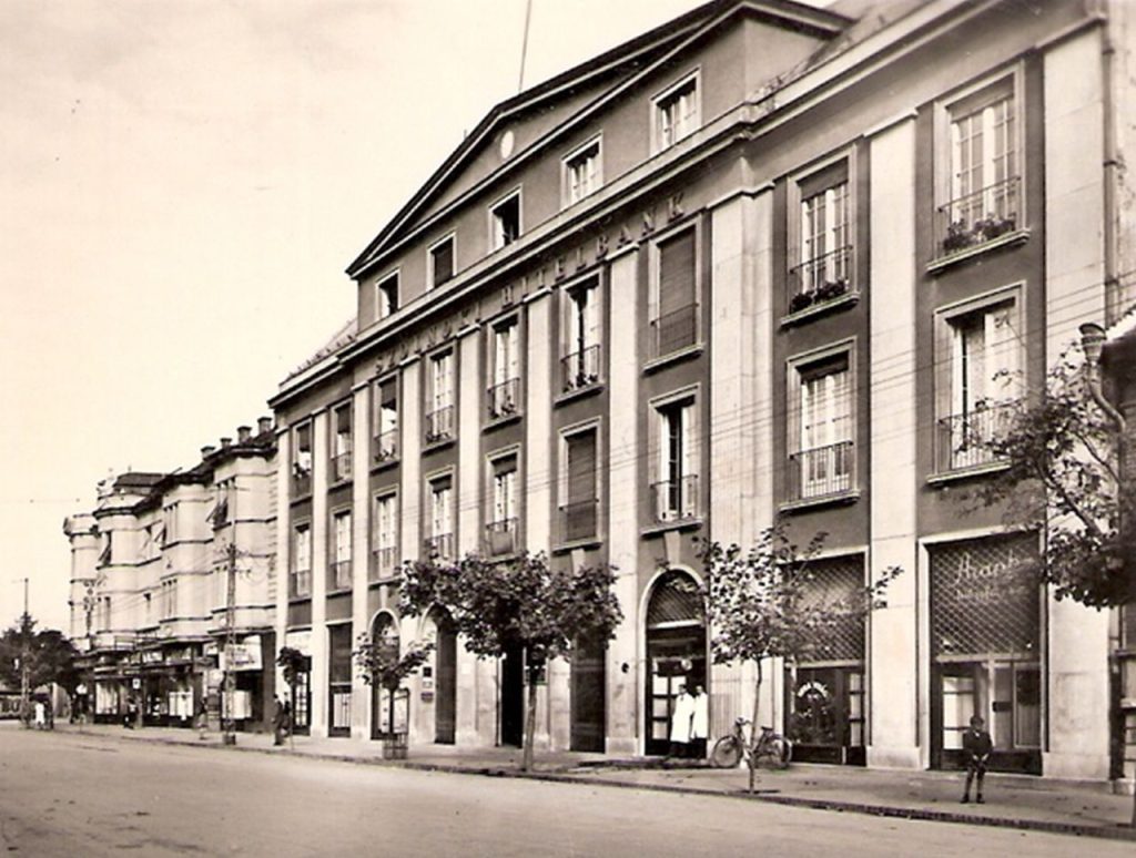 A nagy gazdasági világválság miatti megtorpanás után épült a Szolnoki Hitelbank új bérháza a Szapáry úton, ami egyben pénzintézet is volt