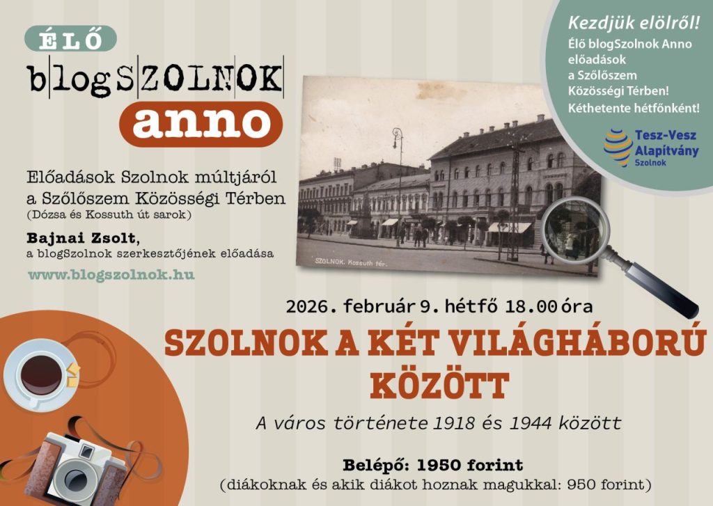 (Szolnok első, modern lakásépítési időszakáról is szó lesz az Élő blogSzolnok Anno „Szolnok a két világháború között” című előadásán, 2026. február 9-én hétfőn, 18.00 órától a Szőlőszem Közösségi Térben, a Dózsa György és a Kossuth utca sarkán.)