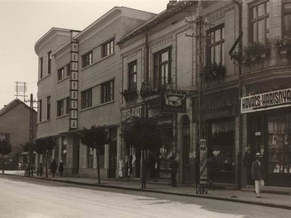 Őszintén megmondom, hogy elég sokszor láttam már ezeket a fotókat, de mindig csak a bauhaus stílusú épület homlokzatára, különleges ablakaira, rácsaira, a Baross utca felé nyíló több ajtajára koncentráltam, és el is kerülte a figyelmemet a függőleges felirat: MKIRPOSTA. Jobban megnézve a „betűkockákat”, amelyek a Kossuth tér és a vasút irányából is azonosak voltak, azt kell gondolnom, hogy egy világító felirattal van dolgunk. Ami a harmincas évek elején egyáltalán nem lenne meglepő, hiszen Budapest nagyobb tereiről és fontosabb utcáiról már ismerünk ilyen szerkezeteket, például a Hippolyt, a lakáj című film néhány külső vágóképén is láthatók. Márpedig, ha ez így van, akkor a magam részéről felül kell írnom azt az eddigi nézetem, miszerint a fényreklámok az ötvenes évek végével jelentek volna meg Szolnokon. E kép alapján maximum annyi mondható, hogy tömegessé akkor vált, és akkor jelentek meg a fénycsövek, amelyek részben kiváltották a belülről világító, áttetsző „dobozokat”.