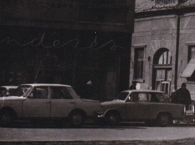 De más apróságokat is érdemes észrevenni ezen a szerintem 44 éves felvételen. És nem elsősorban a lakberendezési bolt előtt parkoló Trabant 601-esre és Wartburg 353-asra – a ma már ugyancsak nem létező NDK autóiparának két „csúcsmodelljére” – gondolok. Hanem például a kereszteződésen éppen áttolni készült nagykerekes, úgynevezett fekvő babakocsira, amihez hasonlóban a fél országot tologathatták. Vagy a már szinte tető nélküli ház Hubay utcai oldala előtt álló utcai lámpára, amiből már csak egy-egy található mutatóban, a városban. Netán a Sólyom utca végén álló elsőbbség adásra figyelmeztető táblára, amelynek oszlopát akkoriban még fekete-fehérre festették. (A bukósisakban sétáló és a kamerába néző úrral most ne foglalkozzunk!)