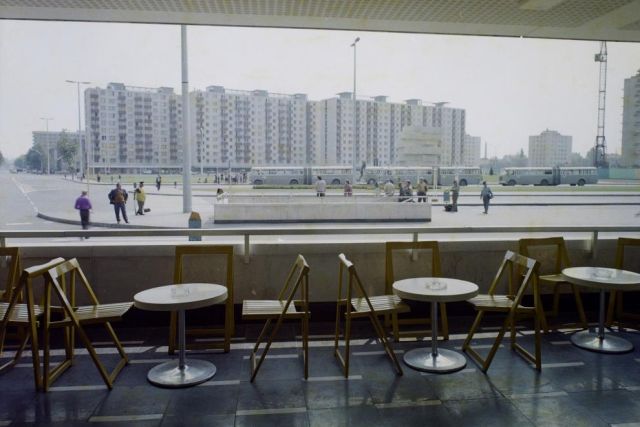 Bauer Sándornak és a Fortepan-nak köszönhetően lehet elképzelésünk arról, milyen kép tárulhatott az elé, aki 1975 késő nyarán, az új vasútállomáson keresztül Szolnokra érkezett. A frissen felavatott Jubileum téri épületből kilépve ugyanazt látta, mint a Váróterem helyén lévő presszó teraszán üldögélők.