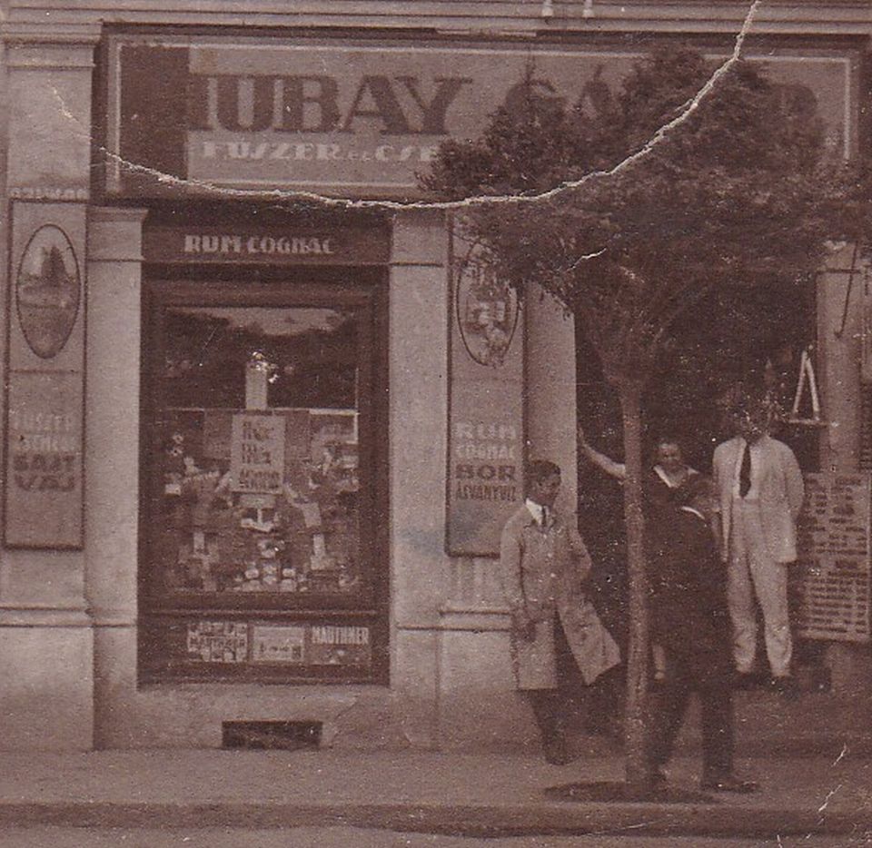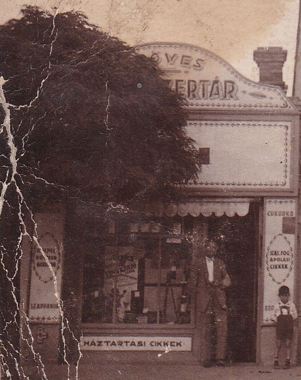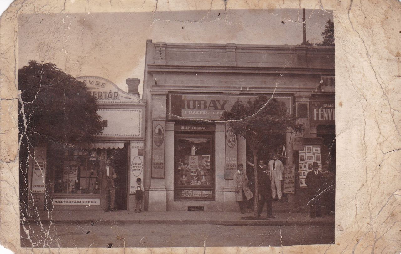 A fentiek alapján pedig azt kell gondolnom, hogy e képeslap írója az a hölgy, aki a Hubay Gábor fűszer-csemege kereskedés ajtajában, jobb kezével a félfának támaszkodva áll, kicsit takarva egy fiatal fától. Amennyiben ez így van, akkor szerintem a hölgy balján, világos öltönyben magát Hubay Gábor kereskedőt látjuk, míg a Mariska másik oldalán a segédjük, netán a fiuk állhat. A kép és a hátuljára írt szöveg alapján semmi kétségem nincs afelől, hogy a szolnoki Hubay Gábor a kunhegyesi Szabó Mariskát, az ottani fűszerkereskedő lányát vehette korábban feleségül, majd közösen vezették a szolnoki, Baross utcai üzletet. Ami 1926-ban, amikor az ország éppen próbált a háború utáni recesszióból kimászni, készült a korona pengőre cserélésére, nem mehetett éppen valami jól, bár maga a kirakat és e képeslap elkészülte ennek kicsit ellentmond.