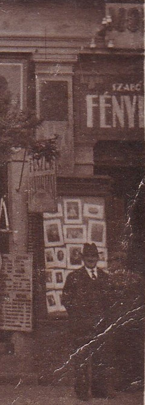 Bár gyorsan tegyük hozzá, hogy az üzletek képeslapon való reklámozása az 1920-as években épp úgy nem volt ritkaság, mint az egyszerű családi fotók képeslap hátsóval való megjelentetése és postázása. Tehát éppúgy előfordulhat, hogy Hubay Gábor üzletéről több száz képeslap készült, mint az is, hogy az itt bemutatott az egyetlen példány belőle. Ugyanakkor nem kételkedem abban, hogy magát a fotót és az anzikszot Hubay Gábor szomszédja, Szabó Ferenc fényképész készítette, aki egy kicsit a saját üzletét is rajta hagyta a felvétel és a képeslap jobb szélén. A felvételen ugyan nem látszik Szabó úr teljes neve, de szerencsére Berta Ferenc 2002-ben megírta A fényképészipar 150 éve Szolnokon című remek könyvet, aminek 107. oldalán rábukkantam arra, hogy 1915 és 1940 között, egy bizonyos Szabó Ferenc éppen a Baross utca 9. szám alatt vitte műtermét. Azaz újabb bizonyítékot találtam arra, hogy ez a kép Szolnokon, a Baross utcában készült és bő évszázada már nem álló házakat mutat.
