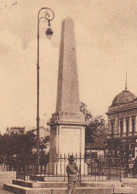 Szolnok házi ezredének, a 68-as gyalogezred hőseinek emléket állító obeliszken e fotó készítésekor még nem lehetett ott az első világháborúra emlékeztető tábla. Még legalább két év volt a hosszú 19. századból, a békeévekből, amikor Gettler József hírlapelőfizetői irodája kiadta ezt a képeslapot.