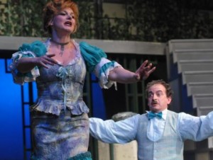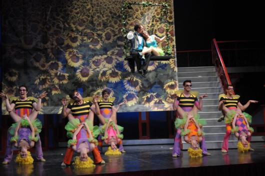 A szolnoki nézőknek viszont szerencséjük van, hogy ezt a védhetetlenül elavult és unalmas darabot olyan rendező vette a kezébe, aki minden körülmények között szórakoztatni akarja a nézőit. Radó Denise így telepakolta a Cirkuszhercegnőt meglepő mutatványokkal, elképesztő gegekkel, szórakoztató illetve néhol védhetetlen poénokkal. És még csak arra sem ügyelt, hogy a legszebbnek gondolt szerelmi duettek közben ne legyen néhány remek fricska a háttérben, amin legalább nevetni lehetett. Nem szeretném lelőni a poénokat, de a hatalmas torta, a lufitól beszívó énekesek, a külön életet élő kőszobrok mind-mind azt a célt szolgálják, hogy ha már meg kell néznünk ezt a darabot, akkor legalább legyen egy jó esténk.
