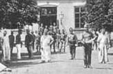 Milyen jó lenne tudni, hogy ki lehet az a kiskamasz, aki a kép bal szélén a kútra támaszkodva áll kalapban. Vajon mi dolga lehetett éppen akkor arra? Kíváncsi lennék arra is, hogy a jobb szélen elől álló három katona miért merészkedett ilyen közel a fotográfushoz, és vajon ki lehet az a három fehér köténybe öltözött férfi, akik szinte egyenlő távolságra álltak meg egymástól? Három hentes a közelből? Vagy három katona, akik éppen hentesként szolgálnak?