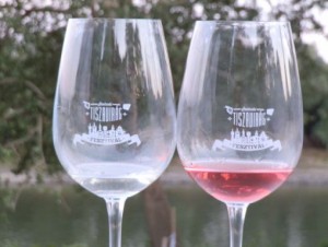 Vacsora után jöhetett a bor. Amit első alkalommal nem is lehet másba méretni, mint a fesztivál hivatalos poharába. Amin ezúttal a város jellegzetes épületeinek sziluettjei sorakoznak egymás mellett. Balatoni borra vágytunk. Így ezen az estén a Léránt Pince lett a nyerő. A hideg félédes muskotálya ismétlésért kiáltott, de a rozéja is megérdemelt választás volt.